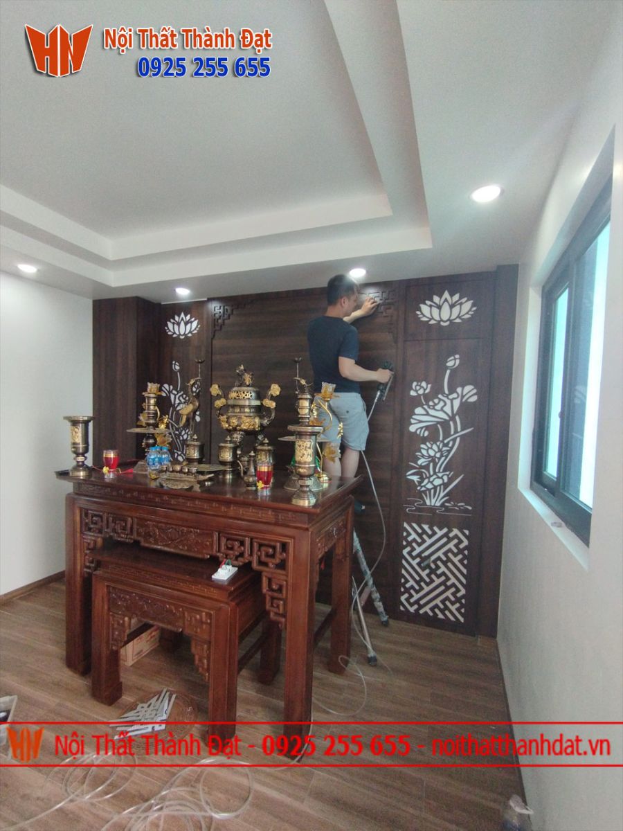 THI CÔNG VÁCH BAN THỜ - VÁCH NGĂN PHÒNG THỜ GIÁ TẠI XƯỞNG